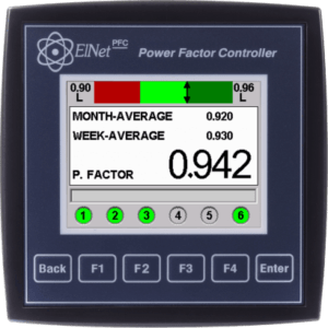 ELNet PFC – Administrador de Factor de Potencia, permite la medición del factor de potencia y la corrección del factor de potencia mediante el uso de hasta 6 controles de conmutación On / Off del banco de capacitores. ELNet PFC permite la identificación automática De los diferentes tamaños de los capacitores y su conexión. La avanzada pantalla LCD en color permite Acceder fácilmente a los valores eléctricos básicos Pantallas tales como voltaje, corriente, etc, así como toda la información y las pantallas de configuración. Las protecciones armónicas, la prolongación de la vida del condensador y los algoritmos de ahorro de energía hacen que el PFC sea una solución más eficaz para la corrección del factor de potencia.
